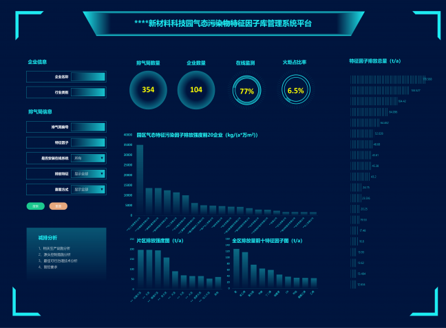 為摸清某化工園企業(yè)排放的廢氣種類、來源、分布等污染情況,對園區(qū)內(nèi)100多家化工企業(yè)共300多個有組織排氣筒的排放情況進行系統(tǒng)化摸排分析及采樣監(jiān)測,真實地反映廢氣排放的來源裝置、工藝、排放環(huán)節(jié)、處理設施等關(guān)鍵信息,明確各企業(yè)有組織廢氣污染物的排放特征,準確、全面地為每個排氣筒排放物質(zhì)清單和特征因子建檔。通過建立因子庫大數(shù)據(jù)平臺,實現(xiàn)了排放清單一張表、排放總量一本賬、排放分布一張圖,有效指導大氣網(wǎng)格點監(jiān)控系統(tǒng)建設、強化大氣監(jiān)控力度、提高環(huán)境監(jiān)管水平。